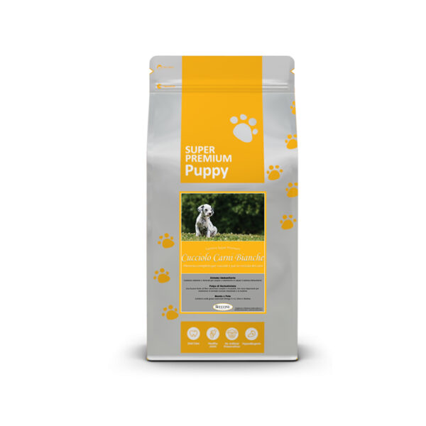 Farina di carni bianche (30%), riso (19%), mais (18%), avena, grasso di carni bianche, zucchero di polpa di barbabietola, farina di pesce, brodo di pollo, lievito di birra, uova in polvere, semi di lino, olio di salmone, minerali, vitamine, Metionina DL, Mannano-Oligosaccaridi (MOS 530 mg/kg), Frutto-Oligosaccaridi (FOS 530 mg/kg), L-Carnitina (95 mg/kg), estratto di yucca schidigera (240 mg/kg), Glucosamina (90 mg/kg), Metilsulfonilmetano (MSM 90 mg/kg), Solfato di Condroitina (60 mg/kg).