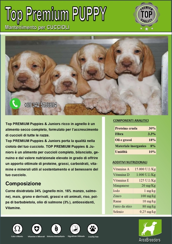 Vitamina A15.000 U.I./Kg -Vitamina D 1.000 U.I./Kg – Vitamina E125 U.I./Kg – Manganese20 mg/Kg Iodo 1 mg/kg – Zinco 100 mg/kg – Rame10 mg/kg – Ferro da stiro 80 mg/kg – Selenio0,25 mg/kg